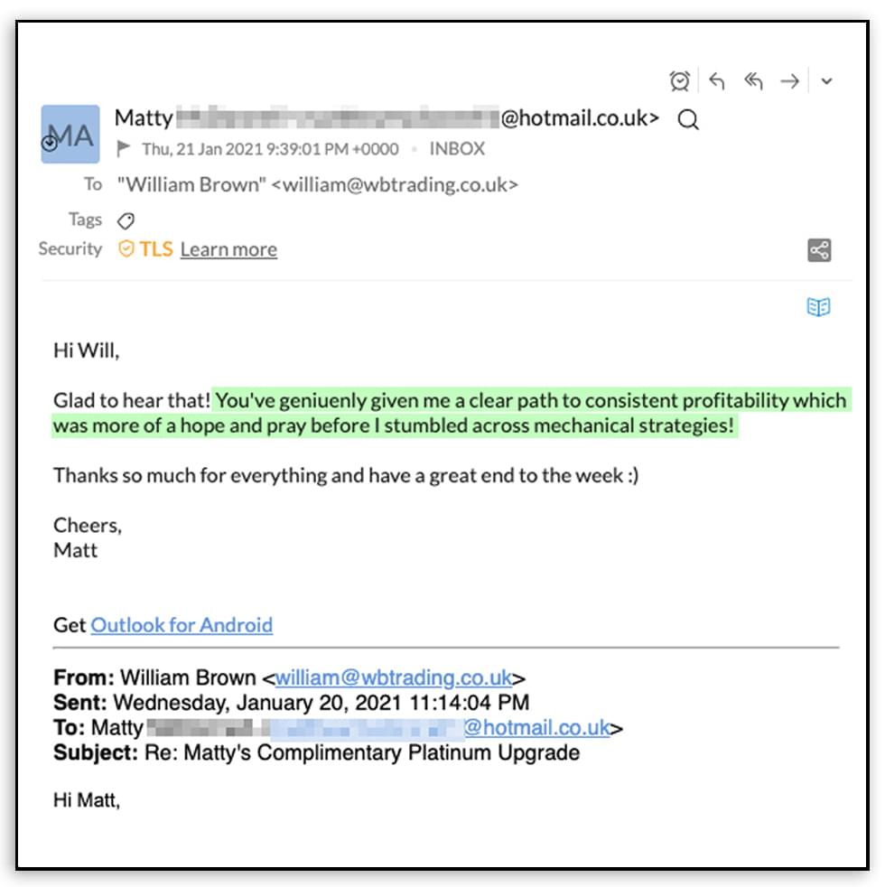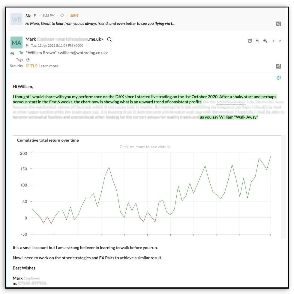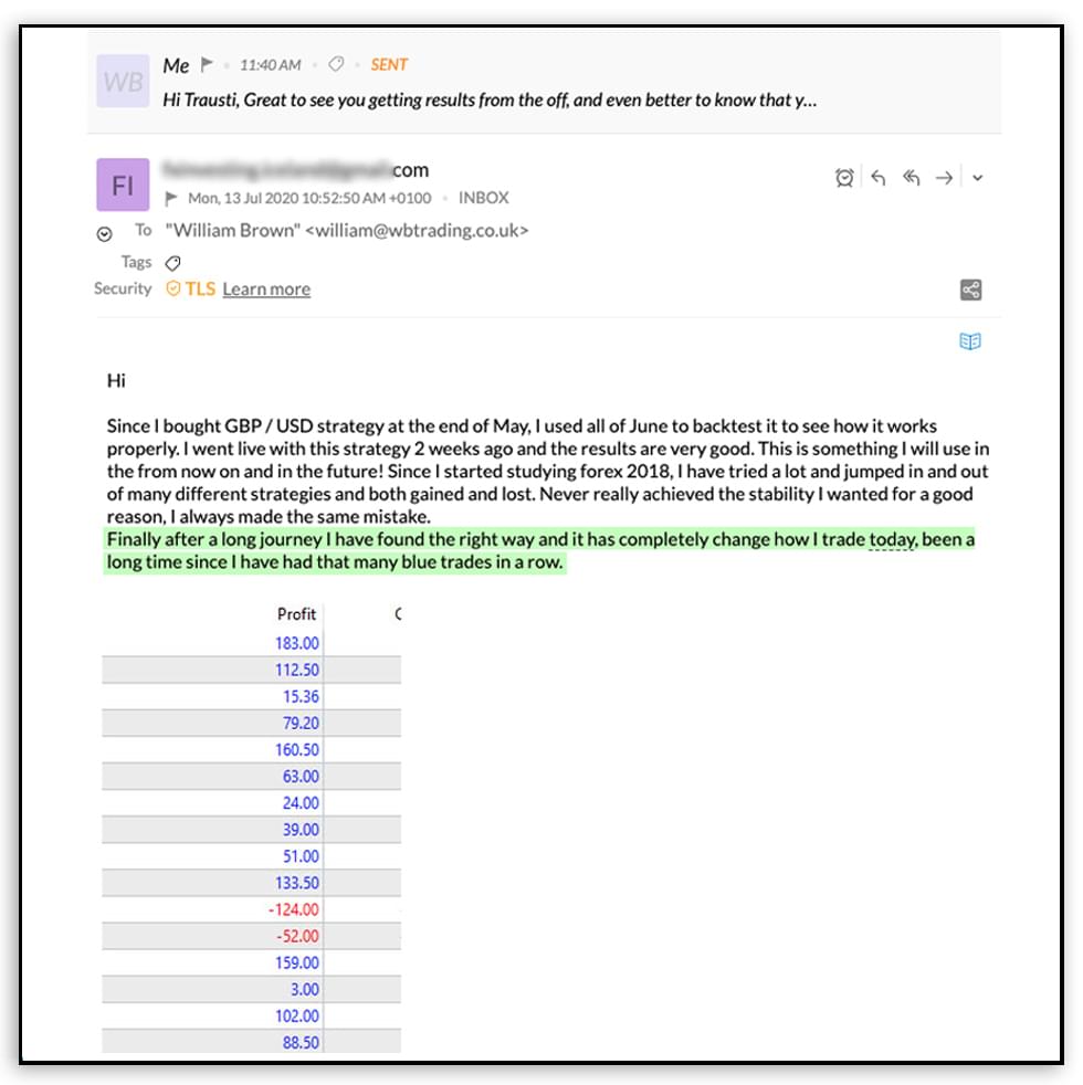 So yeah, it's really worked superbly for me. Um, being able to get a nice profit, growing my account significantly. One other thing I'd say is that not only do Will and Paul and the team provide the strategies for you, but also they will also help and support you in sort of trying to develop your own strategies as well, uh, or perhaps make tweaks to the strategies that you bought to maybe make it, suit your lifestyle a little bit more or suit your sort of maybe your risk or sort of whatever your risk tolerance may be, for example. So incase you want to buy the strategies and sort of, you know, maybe upgrade them a little bit so they can perhaps become more profitable if you want, or make your own strategies sort of act as more a tool of diversification to, sort of, the trading that, that you're doing. Will and Paul will help you with that as well. They're super-supportive. So yeah, I'd say if you're maybe thinking of switching this kind of mechanical or rule-based strategies, you've definitely got off solution now. I mean, you may as well give it a go. Absolutely nothing to lose. So yeah. I hope you make the, make the right choice. Um, thank you very much.