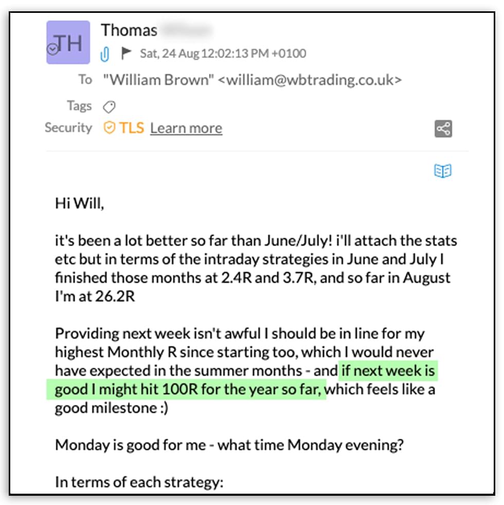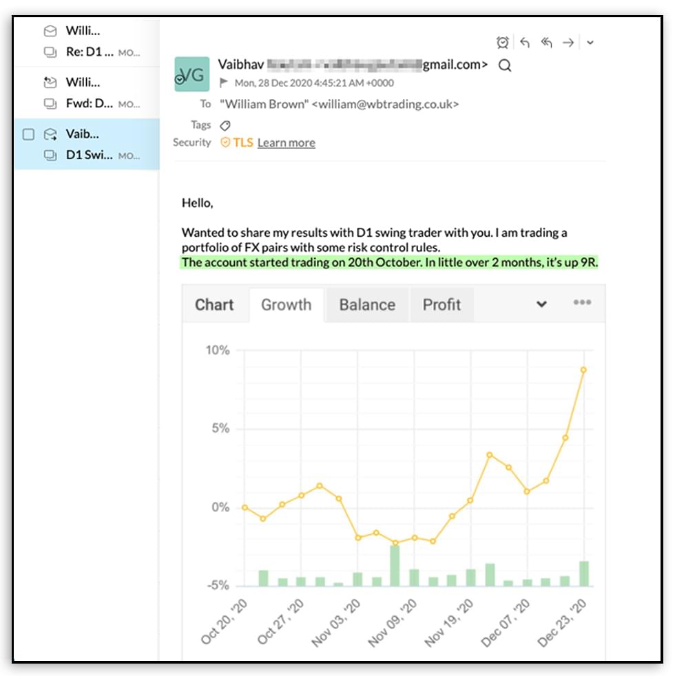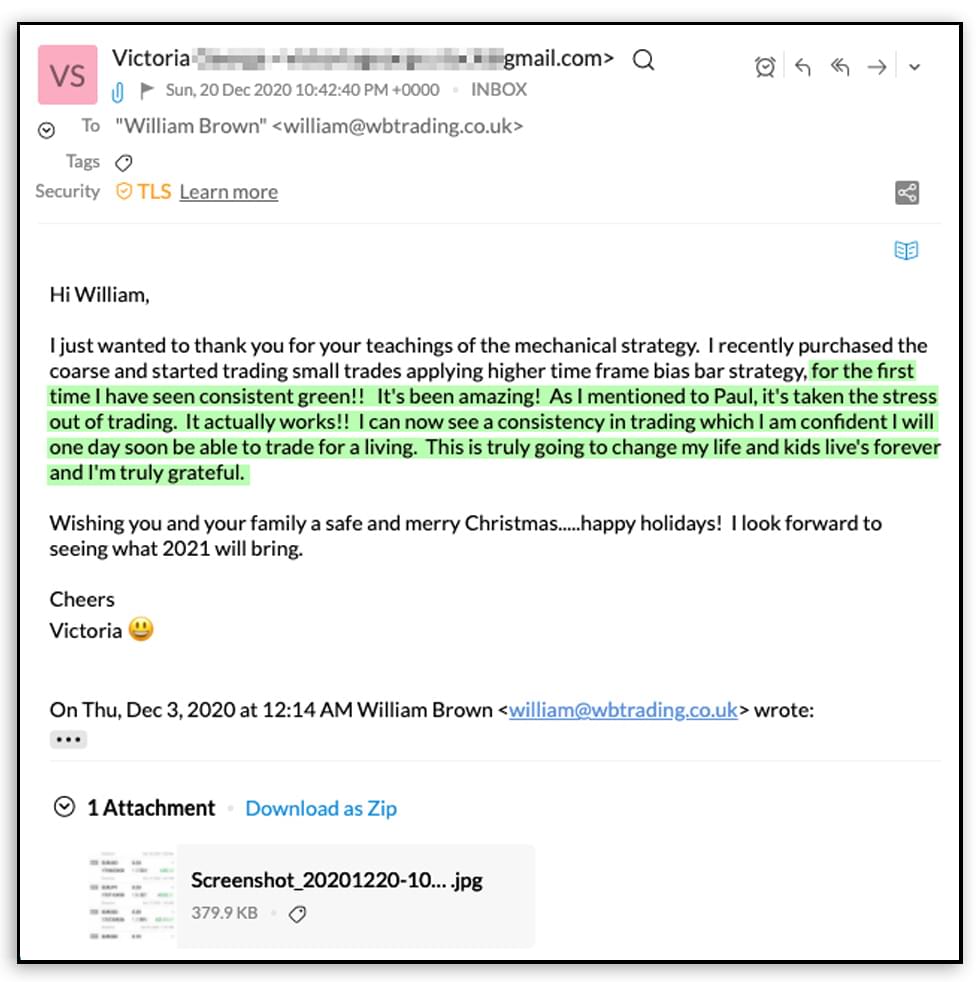 His responses were, you know, top-notch. Replying on the same day, um, all the time, super, super, super helpful. Um, yeah so I bought, I bought the strategies myself. I bought the strategies, and even when I bought strategies, his Emails, same, same goes to his assistant Paul. Um, there was always a fast Email response, it was super timely, super quick, really helpful. And yes, I've sort of taken the rules that I learned and applied it to my own trading and been able to grow my account over the last eight months now which has obviously been quite good. And yeah, for me, it's sort of much more, I wouldn't, I wouldn't say fun because in a way trading has kind of gotten boring now, because I could say, I know what I've got to do. It's black and white, it's concrete. There's no sort of like difficult decisions to make from it.